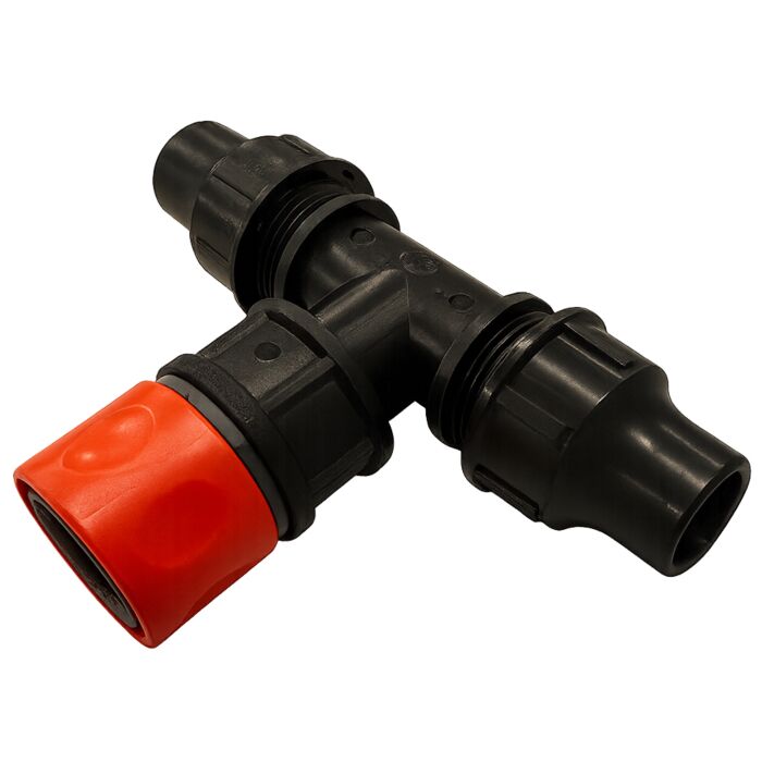 Deze druppelslang startkoppeling T-stuk combineert een Gardena slangstuk met een druppelslang T-stuk, waardoor je direct twee aftakkingen kunt creëren op één watertoevoer. Het slangstuk is geschikt voor een standaard kraanstuk, zodat je de koppeling snel en probleemloos op je watertoevoer aansluit. Zo maak je eenvoudig de eerste verdeling naar je druppelslangen.
