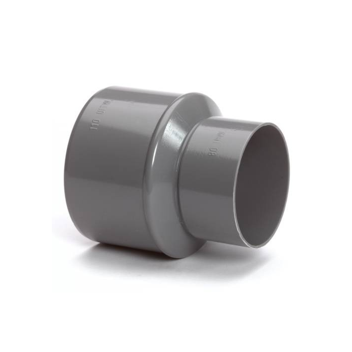 Bijvoorbeeld bij het PVC HWA verloopstuk 80 mm x 110 mm geeft dit de volgende toepassing: