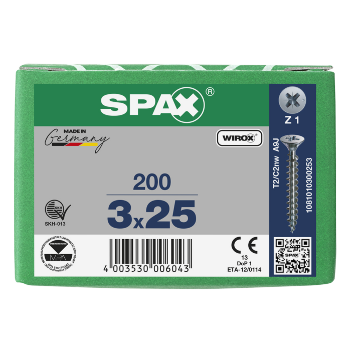Spax spaanplaatschroeven PZ1 verzinkt 3 x 25 mm voldraad 200 stuks