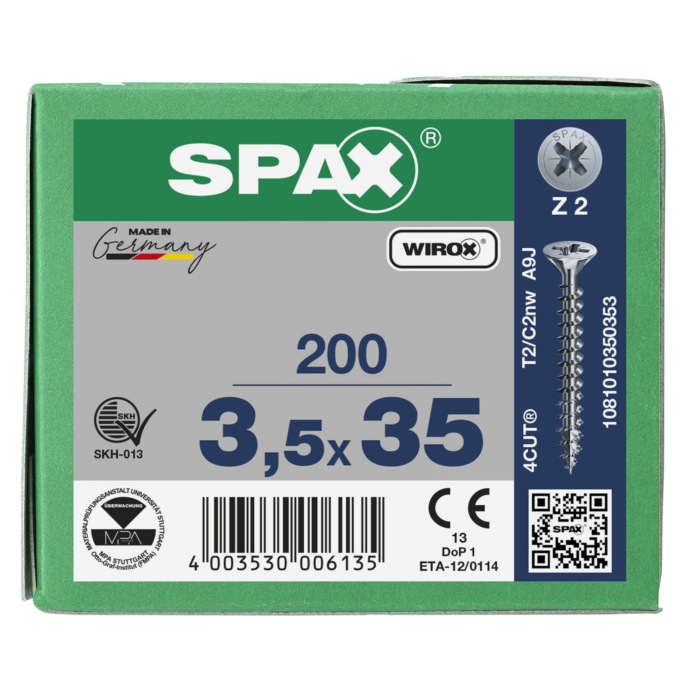 Spax spaanplaatschroeven PZ2 verzinkt 3.5 x 35 mm voldraad 200 stuks