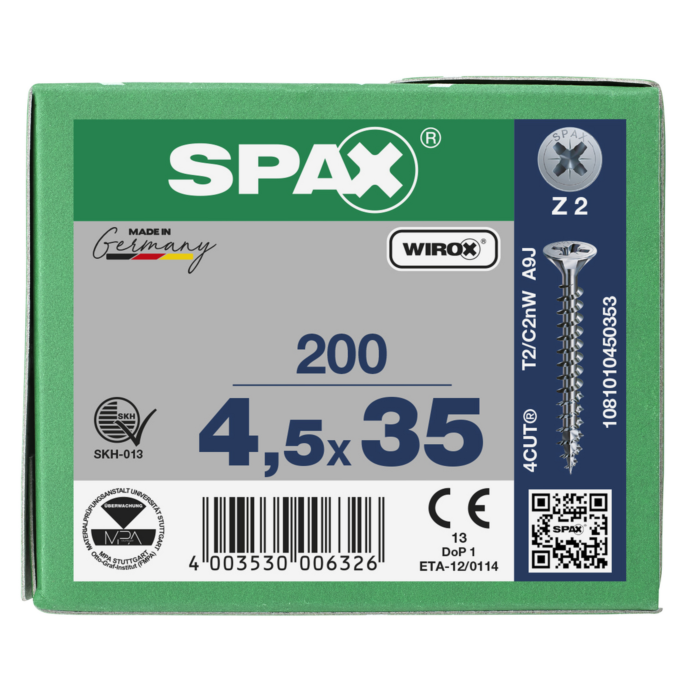 Spax spaanplaatschroeven PZ2 verzinkt 4.5 x 35 mm voldraad 200 stuks