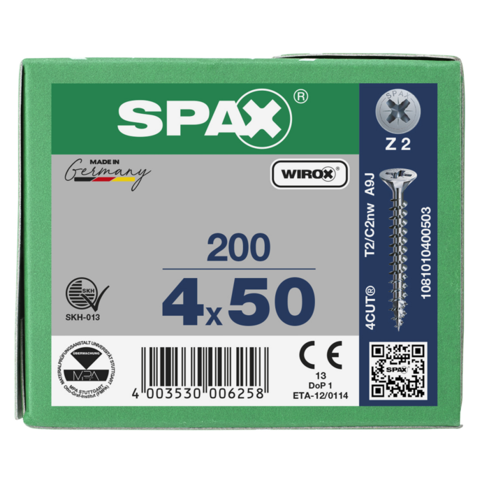 Spax spaanplaatschroeven PZ2 verzinkt 4 x 50 mm voldraad 200 stuks