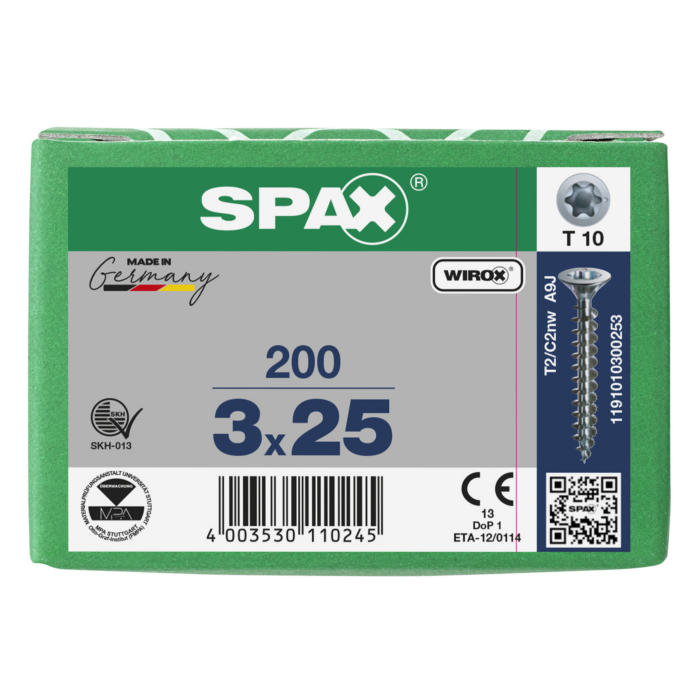 Spax spaanplaatschroeven T10 verzinkt 3 x 25 mm voldraad 200 stuks