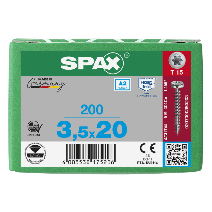Je beoordeelt: Spax spaanplaatschroeven T15 cilinderkop RVS A2 3.5 x 20 mm voldraad 200 stuks