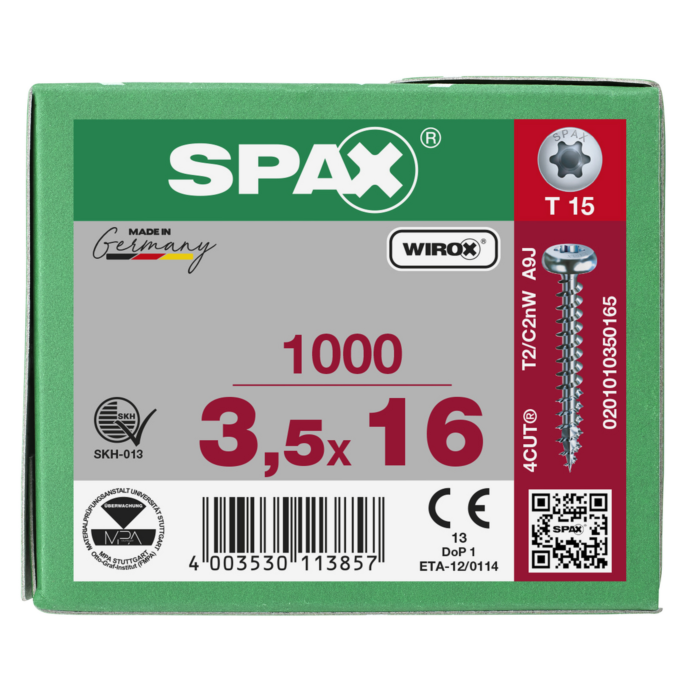 Spax spaanplaatschroeven T15 cilinderkop verzinkt 3.5 x 16 mm voldraad 1000 stuks