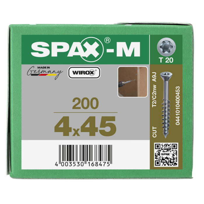 Spax spaanplaatschroeven T20 met boorpunt verzinkt 4 x 45 mm deeldraad 200 stuks