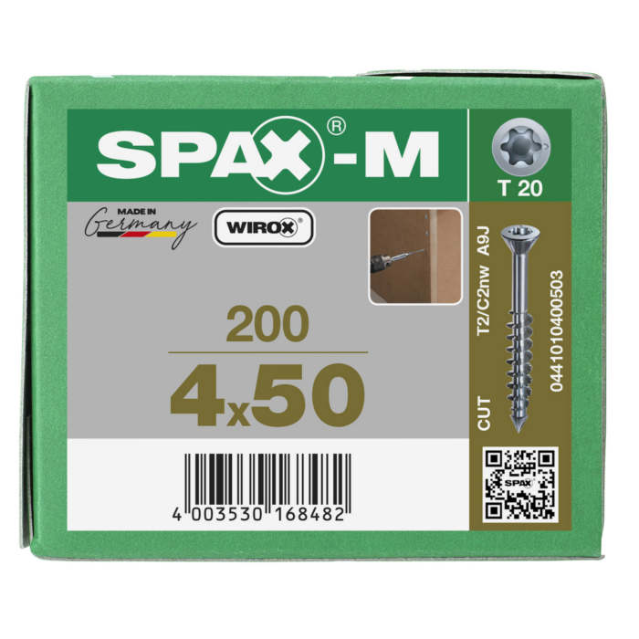 Spax spaanplaatschroeven T20 met boorpunt verzinkt 4 x 50 mm deeldraad 200 stuks