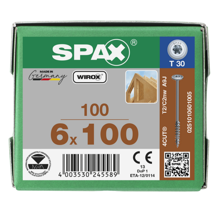 Spax tellerkopschroeven T30 verzinkt 6 x 100 mm deeldraad 100 stuks